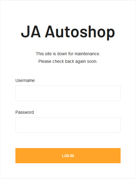 Each JA Joomla Template has its own matching Offline page. Below is the screenshot of Offline page style.